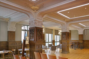 La commune de Pont-Aven achète l’hôtel en 1946 pour y installer la mairie. Le fumoir devient la salle des mariages et du conseil municipal. La salle Julia accueille les bals et réceptions. Le premier étage est occupé par les services administratifs : secrétariat, bureau du maire, cadastre, perception. Un bureau des affaires maritimes se trouve au second étage. Les troisième et quatrième étages accueillent des appartements de fonction.